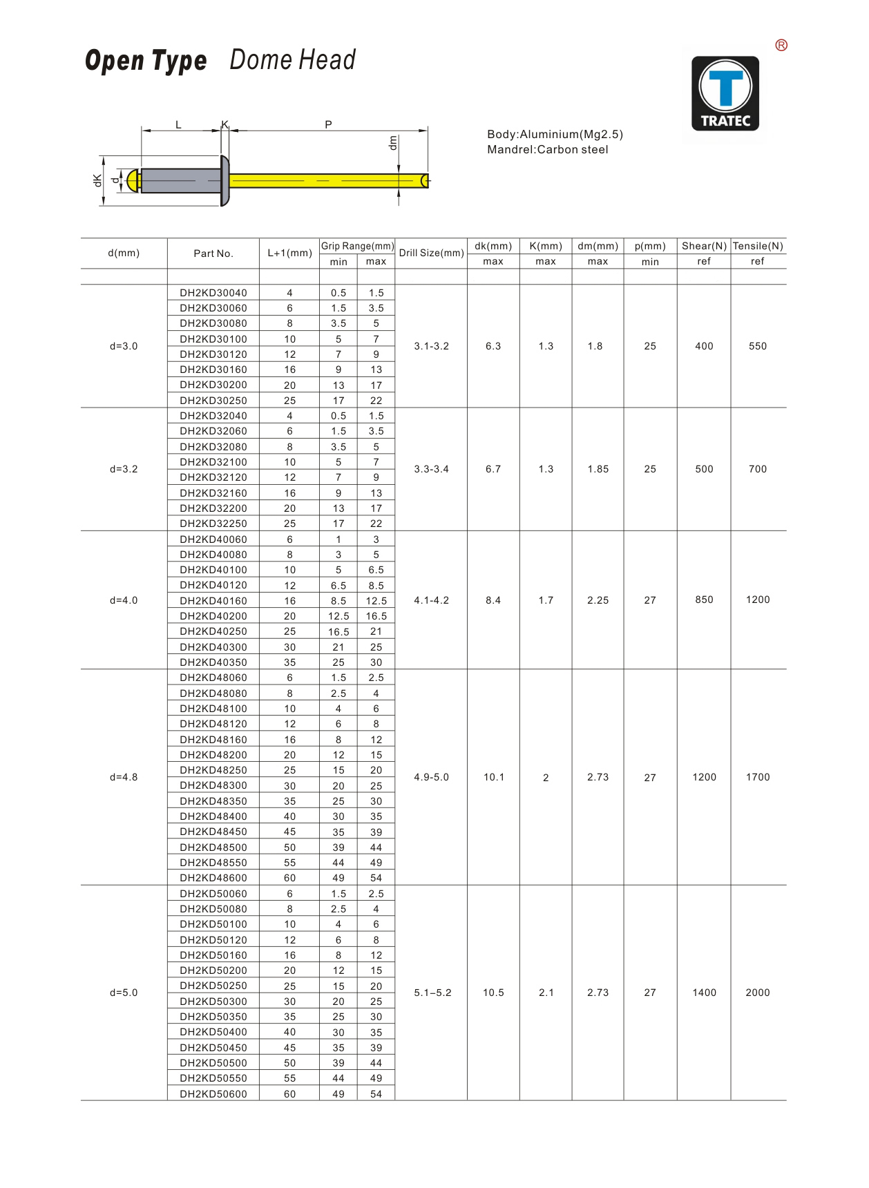 Open Type Dome Head
