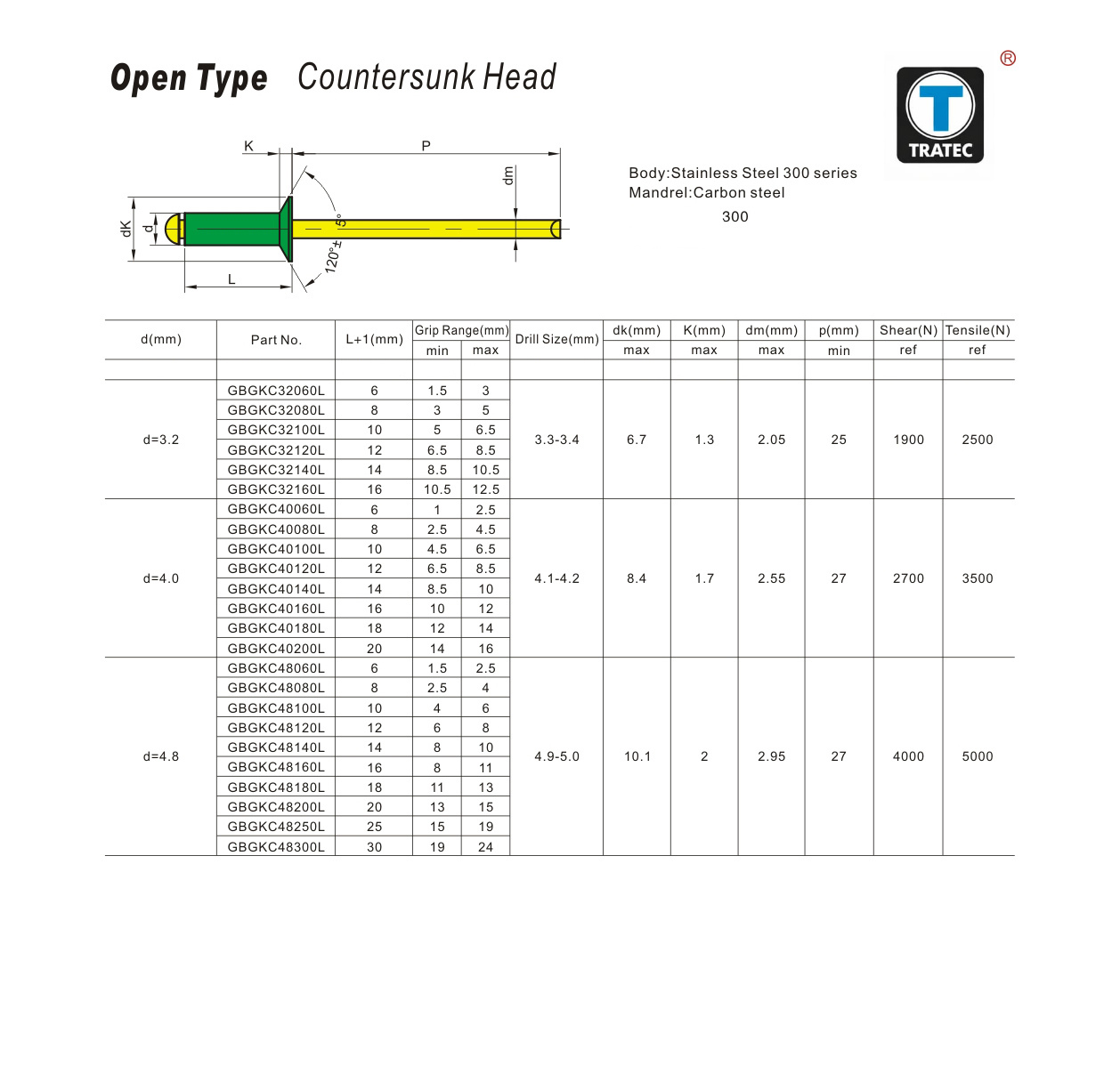 Open Type Countersunk Head