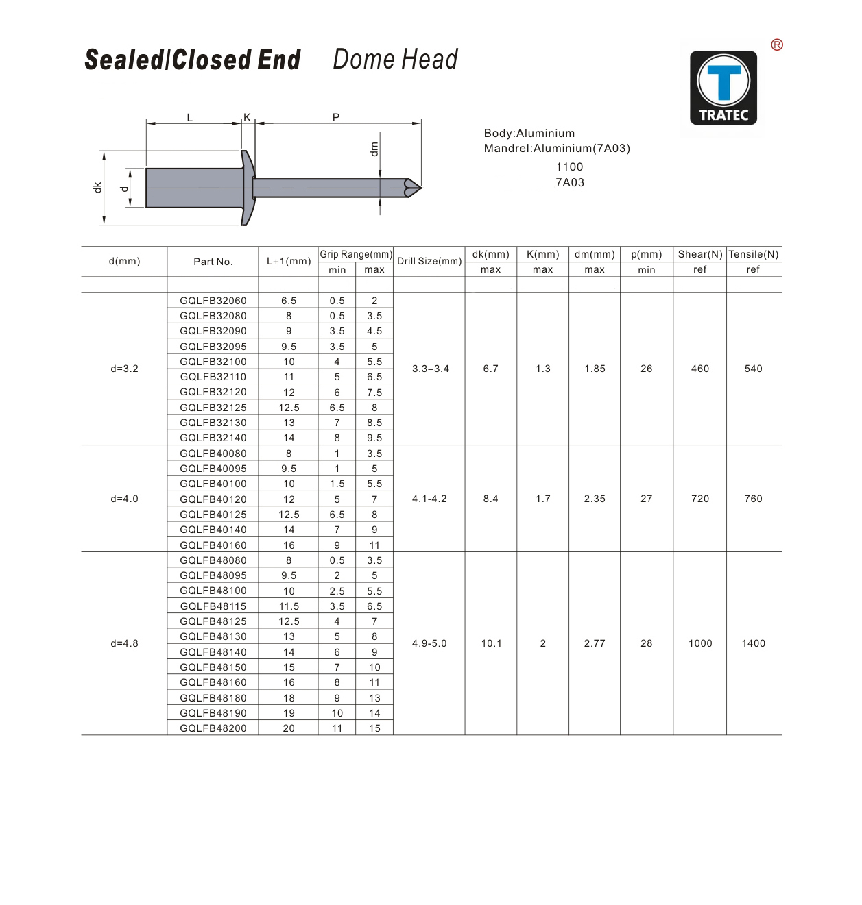 Cabeçote em forma de cúpula com extremidade selada/fechada