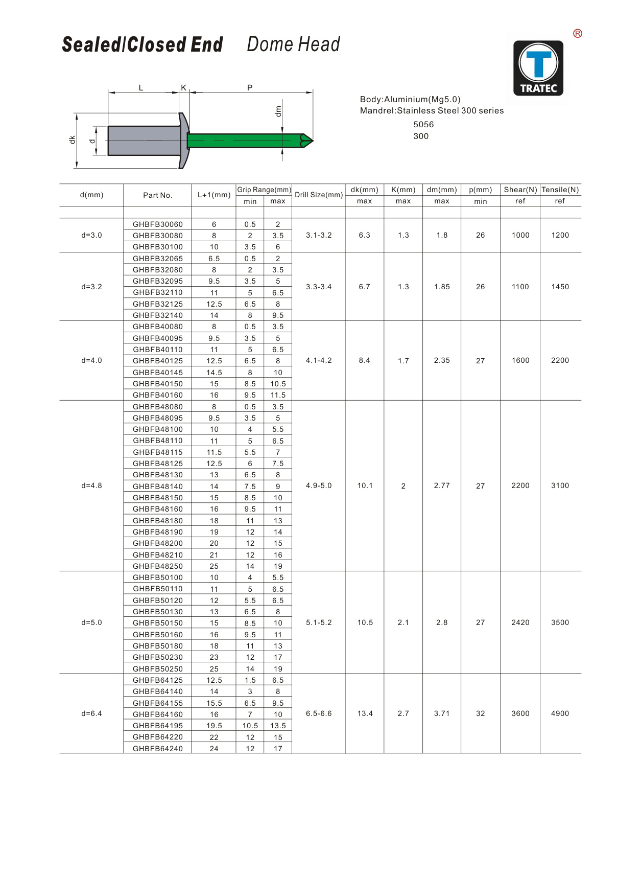 Sealed/Closed End Dome Head