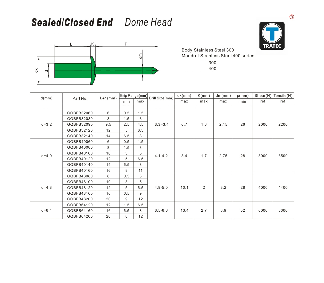 Mandrel:Stainless Steel 400 series