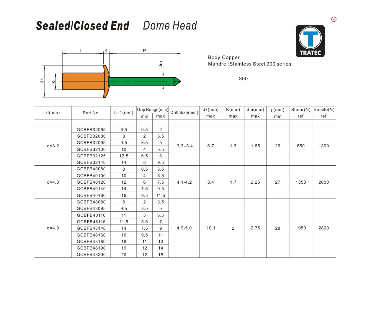 Cabeçote em forma de cúpula com extremidade selada/fechada