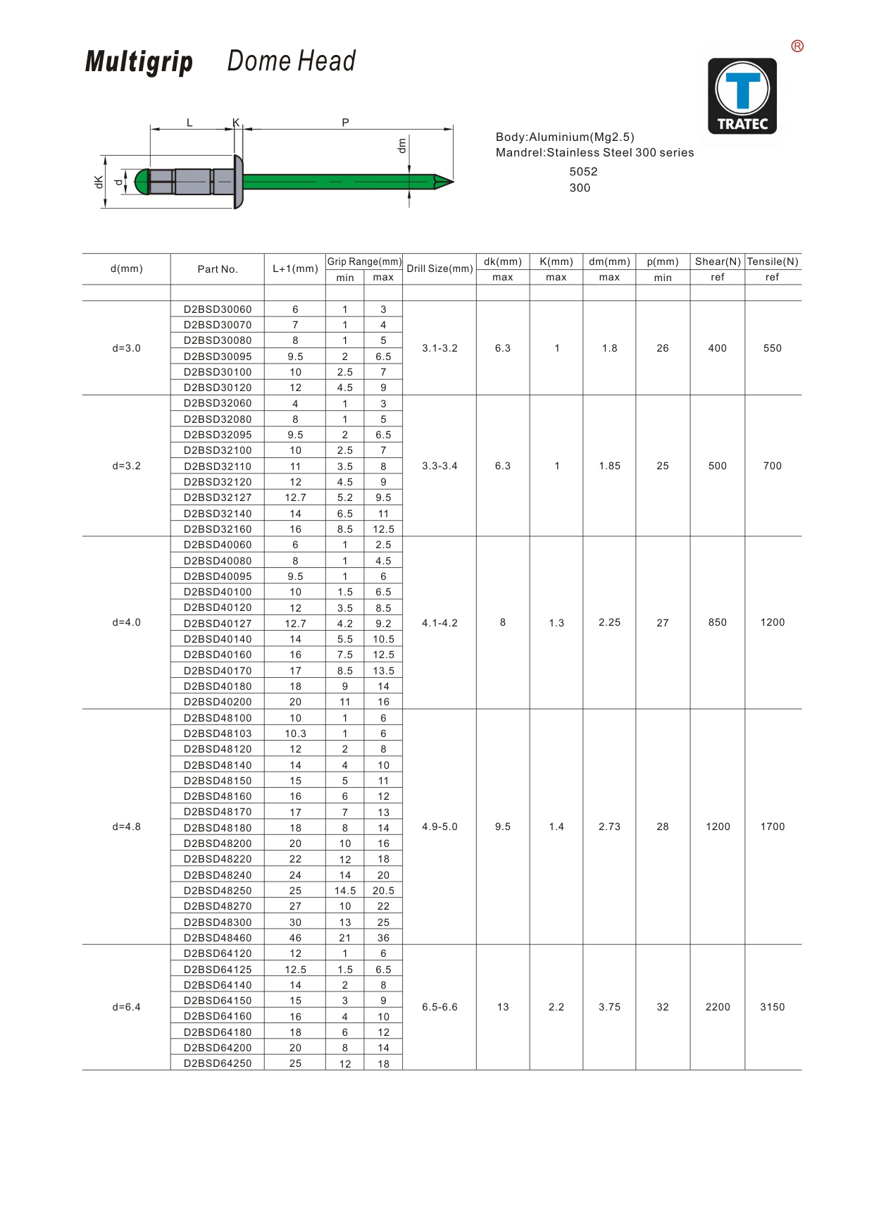 Multigrip Dome Head